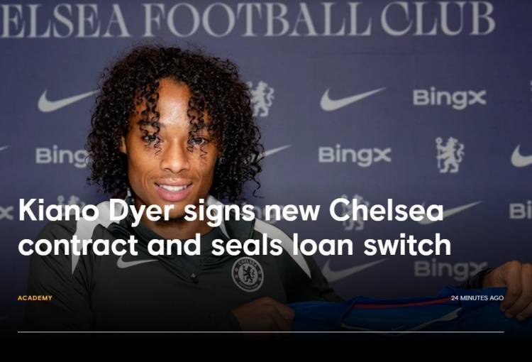 直播吧9月3日讯 官方消息,切尔西与中场小将迪尔续约至2030年,本赛季剩余时间他将租借加盟荷甲球队福伦丹。